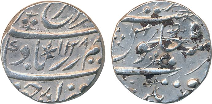 Farrukhsiyar, Silver Rupee, 11.47g, Multan Mint, AH 1126/ RY 3, interesting mint mark in “Seen” of Julus (KM# 377.47). Extremely fine, scarce.