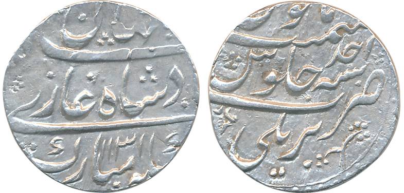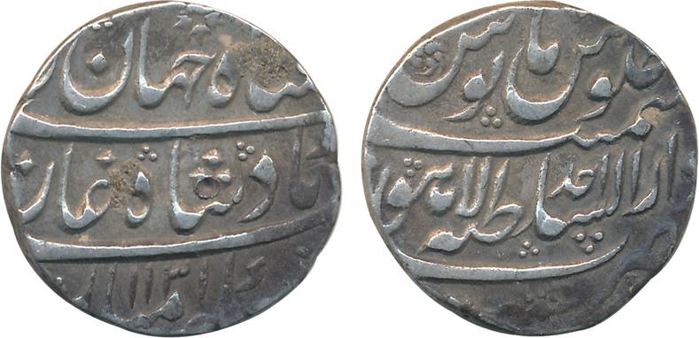 Shah Jahan II, Silver Rupee, 11.30g, Dar us Sultanate Lahore Mint, AH 1131/ RY Ahad (KM# 415.16). Very fine, rare.
