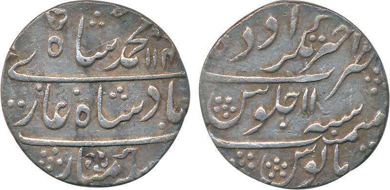 Muhammad Shah, Silver Rupee, 11.54g, Zain ul Bilad (Ahmedabad) Mint, RY 4 (KM# 436.63). Extremely fine, rare.