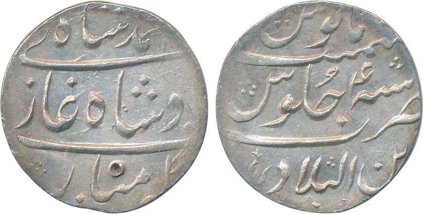 Muhammad Shah, Silver Rupee, 11.49g, Khambayat Mint, AH 114X/ RY 13 (KM# 436.34). Extremely fine.