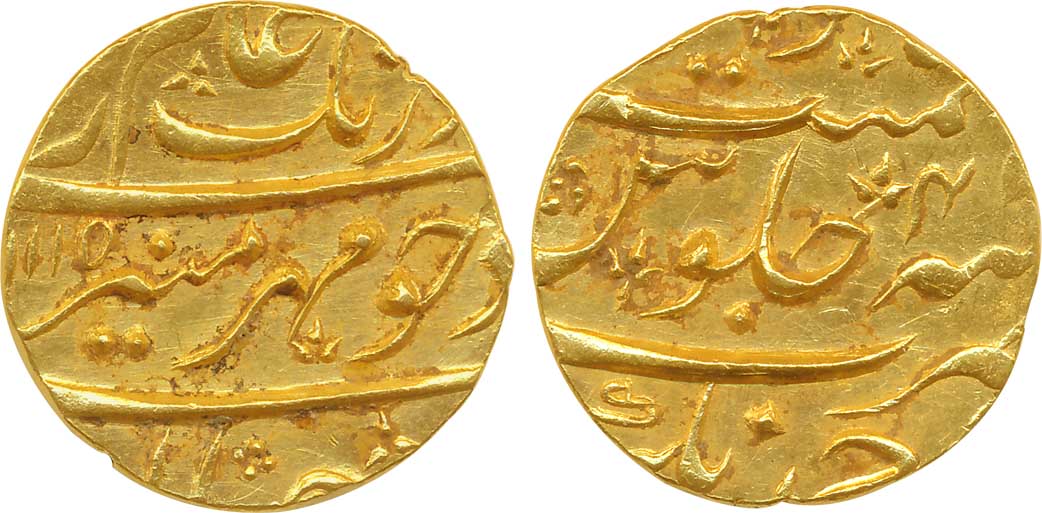 Aurangzeb, Silver Rupee, 11.30g, “Muhayyi ud din” type, Ahmednagar Mint, AH 1083/ RY (1)6 (KM# 297.1). Very fine+, rare.