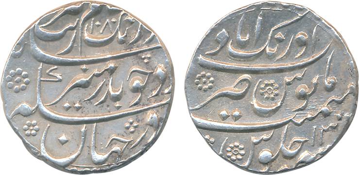 Aurangzeb, Silver Rupee, 11.40g, Islamabad (Chakan) Mint, RY 7, mint name top on rev (KM# 300.35). Very fine+, rare.
