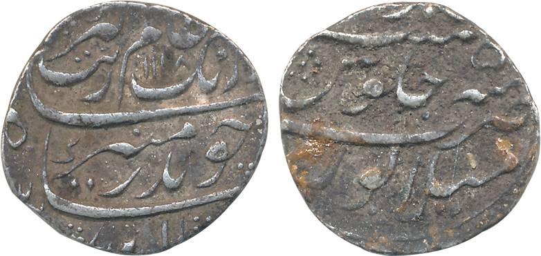 Aurangzeb, Silver, ¼ Rupee, 2.86g, 1109/ RY 42, Multan Mint (Not listed in KM). Patinated, extremely fine, extremely rare.