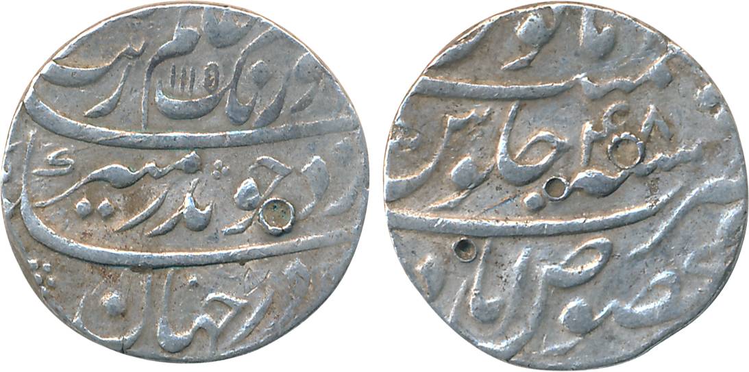 Aurangzeb, Silver Rupee, 11.40g, Nusaratgardh Mint, AH 1110/ RY 43 (KM# 300.69). Cleaned, very fine+, very rare.