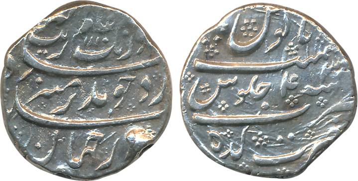 Aurangzeb, Silver Square, 1/8 Rupee, 1.38g, Ujjain Mint (KM# A292.2). Patinated, extremely fine, rare.