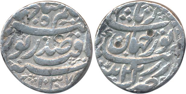 Shah Jahan, Copper, “Nizamshahi” type , 14.31g, Ahmadnagar Mint, Obv: Sahib Quiran Sani, Zarb Ahmednagar, Rev: Fi Shuhur Sanah (Unlisted in KM). Fine, rare.