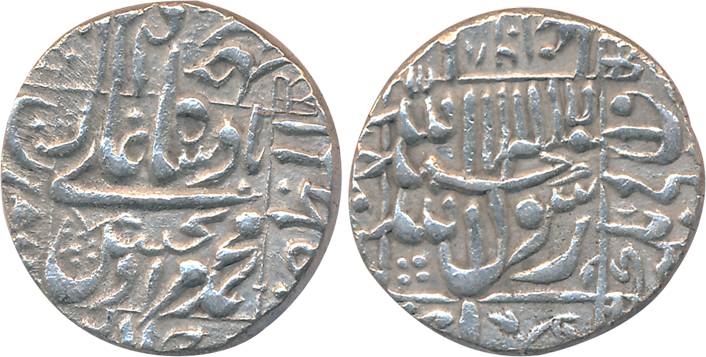 Aurangzeb, Silver Rupee, 11.40g, Ahmadnagar Mint, AH 1096/28 (KM# 300.3). Placement of AH and RY interchanged, very fine, scarce.
