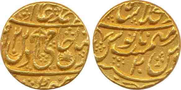 Shah Alam II, Silver Rupee, 11.23g, “Sahib Qiran” type, Dar ul Khilafat Shahjahanabad Mint, AH 1205/ RY 33, Parsol as a mint mark (KM# 710). Extremely fine, scarce.