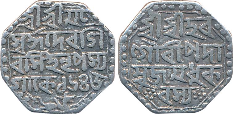 Shiva Simha with Queen Phulesvari, Silver Rupee, 11.41g, SE 1647, Lion to right (KM# 61). Very fine.