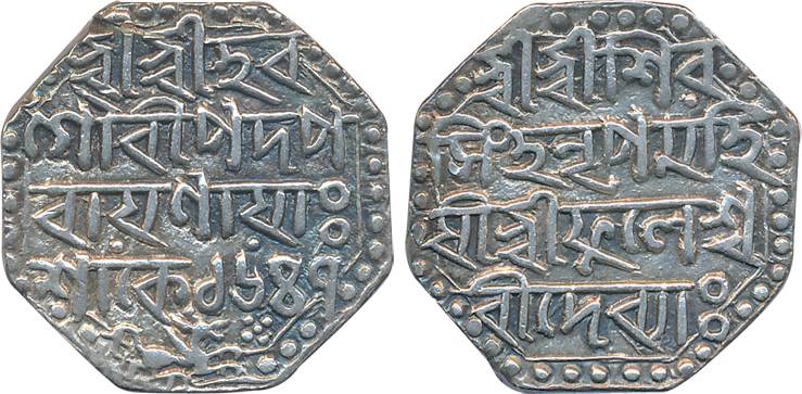Shiv Simha with Queen Ambika Devi, Silver Rupee, 11.09g, SE 1654, Lion to right (KM# 91). Extremely fine, scarce.