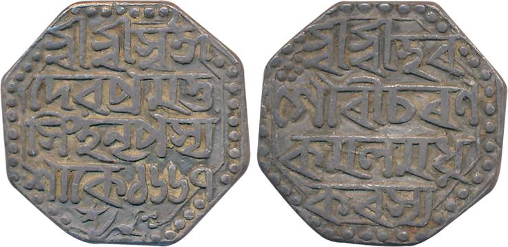 Pramatta Simha, Silver 1/2 Rupee, 5.61g (KM# 120). Uncleaned, very fine+, scarce.