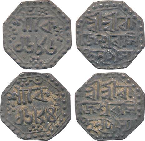 Lakshmi Simha, Silver 1/4 Rupees (2), 2.82g, 2.74g, SE 1702, SE 1696 (KM# 176). Very fine+, scarce. 2 coins.