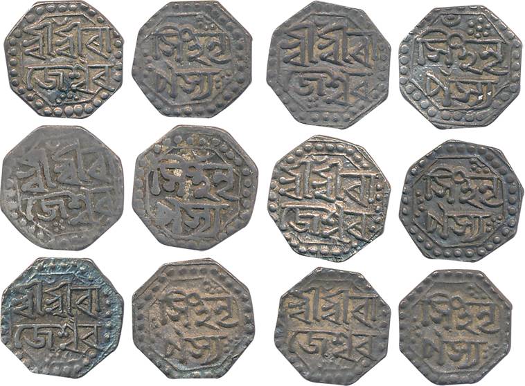 Lakhsmi Simha, Silver (3), 1/2 Rupee (2), 5.72g, 5.50g & Silver 1/4 Rupee (1), 2.79g, SE 1701 (KM# 178, 176). Very fine+, scarce. 3 coins.
