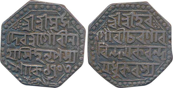 Gaurinatha Simha, Silver Rupee, 11.37g, SE 1706/ 5, Lion to right on obverse (KM# 217). Extremely fine, scarce.
