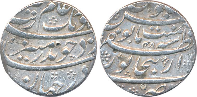 Aurangzeb, Silver 1/2 Rupee, 5.61g, Golkonda Mint, RY 22 (KM# 294.3). Very fine, rare.