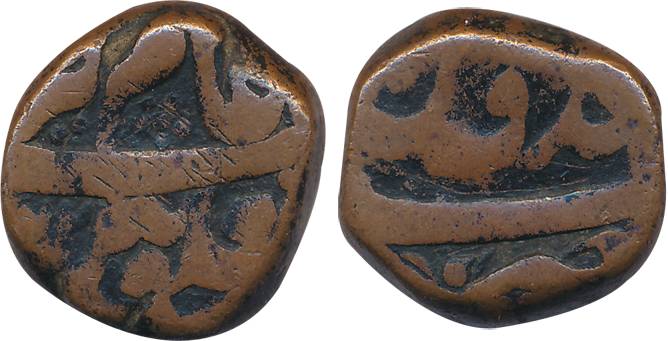 Aurangzeb, Copper Paisa, 13.29g, Farkhanda Bunyad Hyderabad Mint, AH 1109 (KM# 285.3). Very fine, scarce.