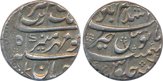 Aurangzeb, Silver Rupee, 11.37g, Kashmir Mint, RY 32 (KM# 300.48). Fine+, rare.