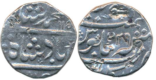 Muhammad Shah, Silver Rupee, 11.31g, Gwalior Mint, AH 114X (KM# 436.25). Very fine.