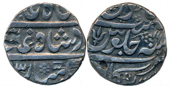 Poona, Silver Rupee, 11.12g, in the name of Shah Ali Gauhar, Ankush as a mint mark (KM# 335). Very fine.