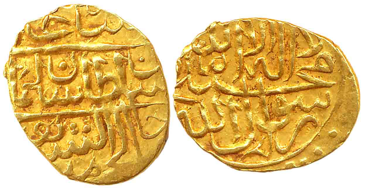 Humayun, 1st Reign, Silver Shahrukhi, 4.74g, Agra Mint, Obv: Muhammad Humayun Ghazi in Mihrab-shaped cartouche, mint, date and other titles in border, Rev: Kalima in circular border with additional invocation “Yarzaq Allah Man Yashao Baghayr Hisab”, names of Caliphs and their titles around. Very fine, rare.