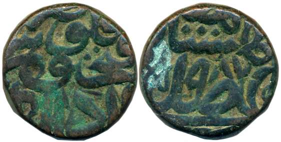 Akbar, Silver Reduced Tanka, 6.95g, Malwa type, Mandu Mint (KM# 75.2). Complete Mint name on bottom thus rare.
