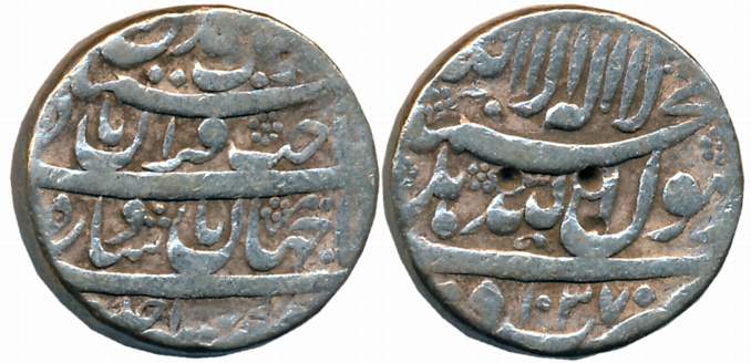 Shah Jahan, Silver Rupee, 11.23g, Bhakkar Mint, central inscription within square, knots at corners on both sides (KM# 235.7). Very fine.