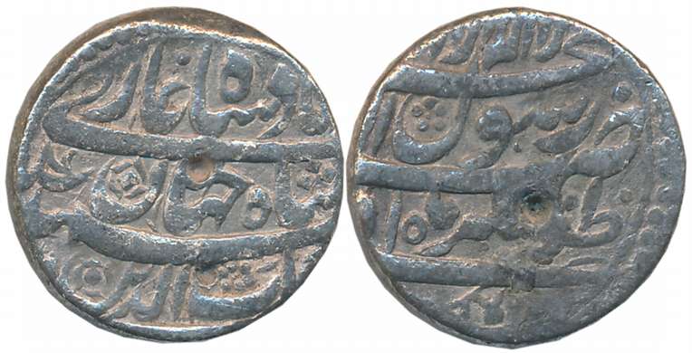 Shah Jahan, Silver 1/2 Rupee, 5.47g, Patna Mint, RY 22, central inscription within square, knots at corners on both sides (KM# 218.7). Very fine, scarce.