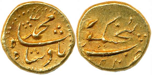 Muhammad Shah, Gold Mohur, 11.06g, Azimabad Mint, AH 11XX/ RY 5 (KM# 438.30). Very fine+, extremely rare.