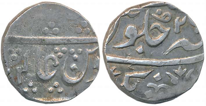 Aurangnagar- Mulher, Silver Rupee, 11.33g, “Sahib-i-qiran” couplet, in the name of Alamgir II, AH 118X/ RY 21, Flower symbol on reverse (M&W# T2b). Extremely fine.