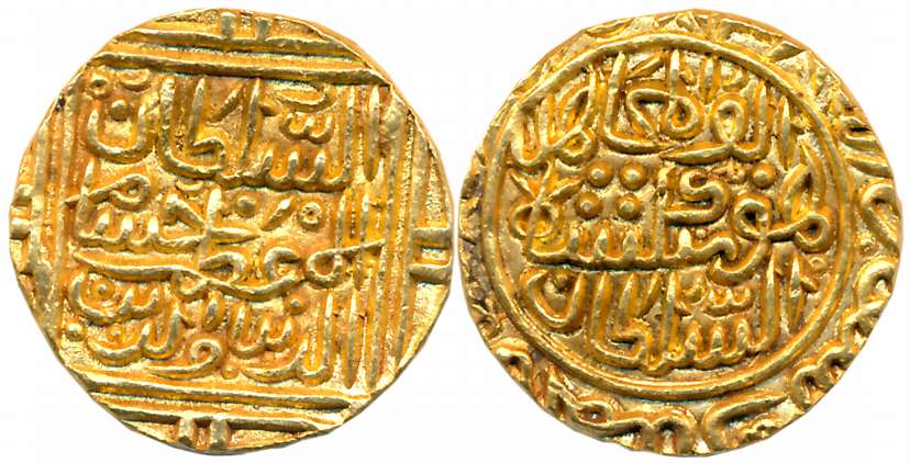 Ala al din Mahmud Shah I, Gold Tanka, 10.82g, Hadrat Shadiabad Mint, Obv: "al sultan al-a zam ala dunya wa l din khalji abu l muzaffar Mahmud shah khallada allah khilafatahu", Rev: "Sikandar al thani yamin al khilafa nasir amir al mu minin" (G&G# M21). Very fine.