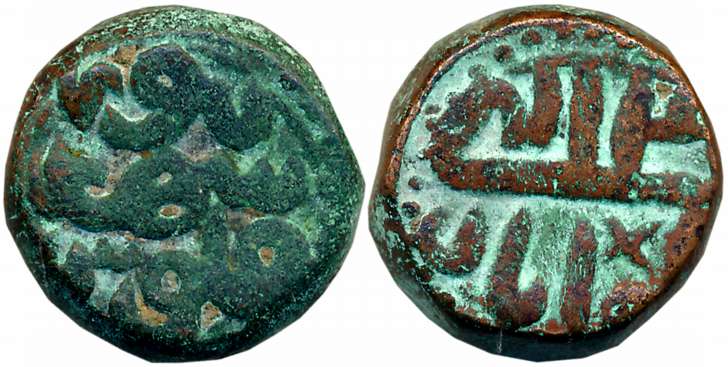 Akbar, Copper Damri, 2.33g, Lahore Mint, Ilahi 3X (KM# 11.3). Very fine, extremely rare.