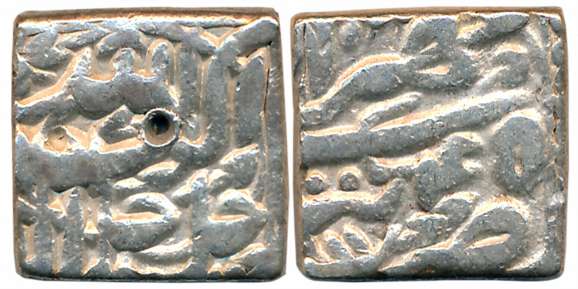 Akbar, Silver Reduced Tanka, 7.08g, Malwa type, Ujjain Mint (KM# 75.1). Complete Mint name on bottom thus rare.