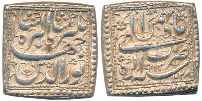 Silver Rupees (2), 11.07g, 11.25g, Akbar, “So called rebellion issue”, Allahabad Mint (KM# 97.1) & Jahangir, Qandahar Mint, RY 9 (KM# 145.13). Very fine. 2 coins.