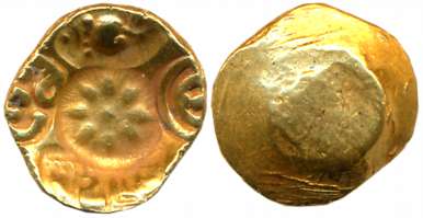 Gahadavalas of Kanauj, Govinda Chandradeva, Debased Gold, 3.97g, Obv: Goddess Lakshmi seated, Rev: “Srimad Govindchandra Deva” in Devnagari (Deyell 147). Very fine+.