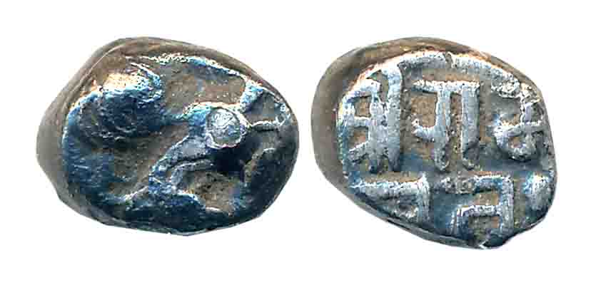 Yadavas of Devagiri, Krishna- Kanahara Deva, Punch Marked, Gold Gadyan- Padam Tanka, 3.82g, Uniface, Lotus in centre + Sri x 2 + conch + legend “Ka Deva”. Very fine, rare.
