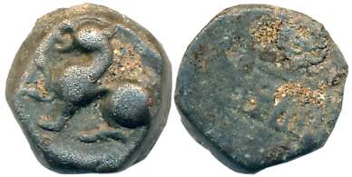 Kalachuris of Tripuri, Gangeya Deva, Debase Gold Dinara, 3.93g, Obv: Goddess Lakshmi seated facing front, Rev: Devnagari legend “Srimad Gangeya Deva” (Deyell 119). Very fine, scarce.