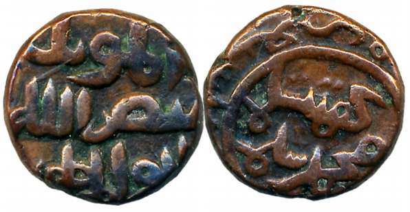 Shams al din Daud Shah II, Copper Falus, 5.20g, Obv: “al- mu’ayyad bi-nasr allah”, Rev: Daud Shah (G&G# BH58). Very fine+, rare.