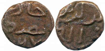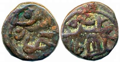 Nasir al din Ismail Shah, Copper Jital, 3.40g, Obv: abu’l fath ismail shah, Rev: nasir al dunya wa’l din (G&G# BH4). Very fine, rare.