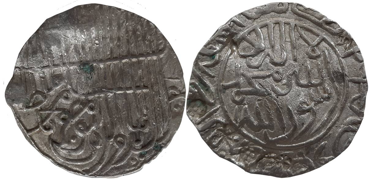 Shihab al din Bayazid, Silver Tanka, 10.74g, “Mintless” type (G&G# B291). Rare.