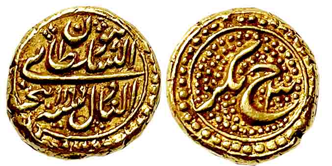 Tipu Sultan, Gold Pagoda- Hon, 3.42g, Nagar Mint, AM 1198/ 2 (KM# 109). About extremely fine, rare.