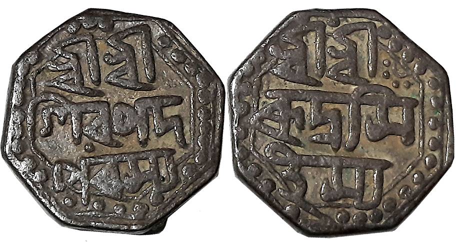 Rudra Simha, Silver Rupee, 11.31g, SE1618, Assamese legend on both sides within dotted border, Obv: “Sri Sri Ha/ra Gauri Pa/dambuja Madhu/karasya”, Rev: “Sri Srimat/ Svarga deva Rudra/ Simhasya Sa/ke 1618”, Lion to right (R&B# F6.1). Very fine+.