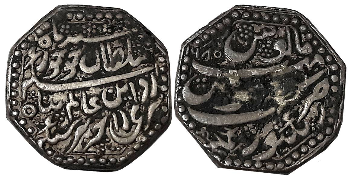 Pramatta Simha, Silver 1/2 Rupee, 5.64g, Assamese legend on both sides within dotted border, Obv: “Sri Sri/ Siva Pada/ Parasya”, Arc of dots upper left and flower of dots upper right, Rev: “Sri Sri Pra/matta Simha/ Nrpasya”, Dots upper left and upper right (R&B# N15.1). Very fine.