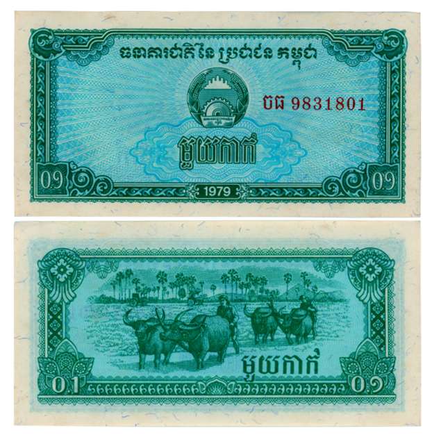 Cambodia, Riels 50, Pack of 100 Notes, Obv: Blue and orange, Fishermen fishing from boats with large nets in Lake Tonle Sap at left and right, Rev: Blue and brown, Angkor Wat complex. (Pick# 7). Uncirculated, Pack of 100 Notes.