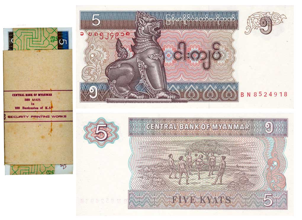 Lebanon, Livres 5, Pack of 100 Notes, Obv: National Museum, Beirut, Green on blue and light yellow underprint, Rev: Bridge over the River Kalb at center right (Pick# 62). Little Rust mark on last 2, 3 notes, Otherwise Uncirculated, Pack of 100 Notes.