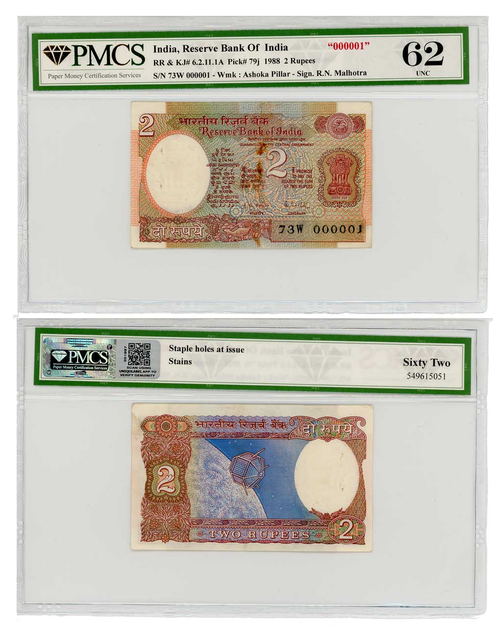 Rupees 10 (2), Star Series Pair with Super Fancy number 757575, Signed Urjit Patel, Prefix 99F & 00L. About extremely fine, rare. 2 Notes.
