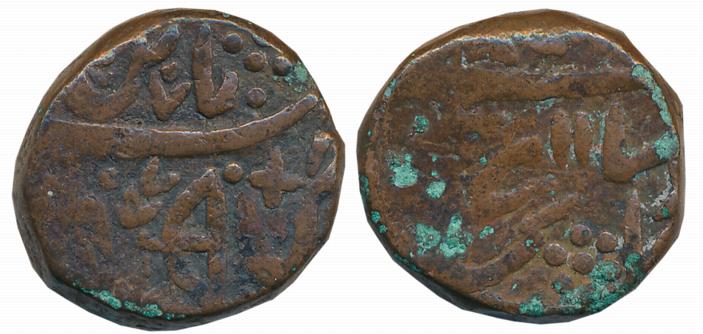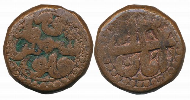 Muhammad Shah, Copper Dam, 13.77g, Khambayat Mint, Mint name at bottom on rev (KM#430.13). Very Fine, Scare.