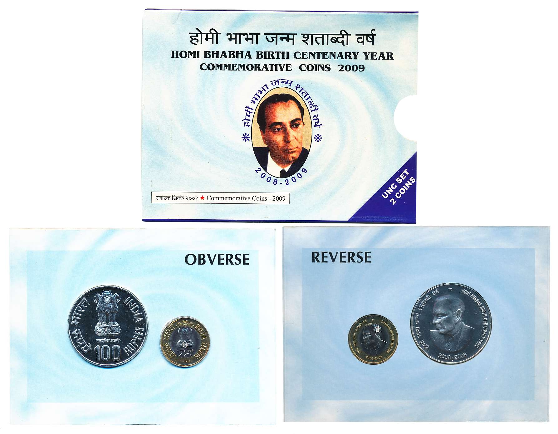 2009, Uncirculated Set of 2, Rupees 100 & 5, “Perarignar Anna Centenary”, Kolkata Mint (S. Reddappa # 25.62). In blister pack in immaculate condition.