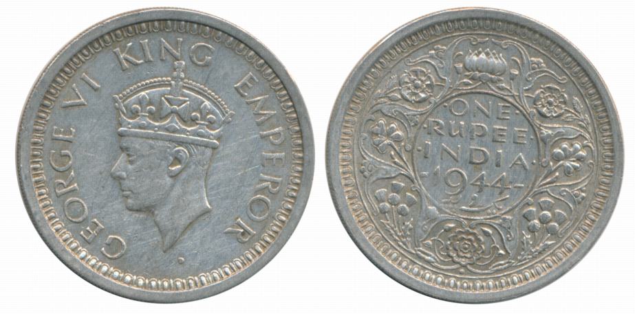 George VI, Silver Rupee, 1944, Obv: Crowned head to left, Rev: Denomination & Date within circle, wreath surrounds, Very Fine. Certified, Authenticated and packed in Temper Proof Coin Card.