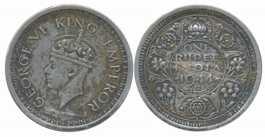 George VI, Silver Rupee, 1945, Obv: Crowned head to left, Rev: Denomination & Date within circle, wreath surrounds, Very Fine. Certified, Authenticated and packed in Temper Proof Coin Card.