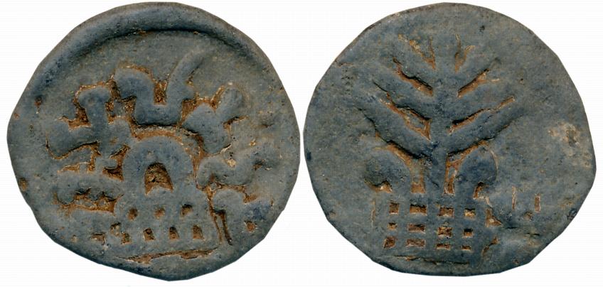 Anandas of Banavasi, Mulanandas, Lead, Unit, 12.66g, “Eight arched hill” Type, Obv: Eight arched hill, Brahmi legend around “Rano Mulanandasa”, Rev: Tree with railing, a nandipada to the left of railing. Extremely fine.